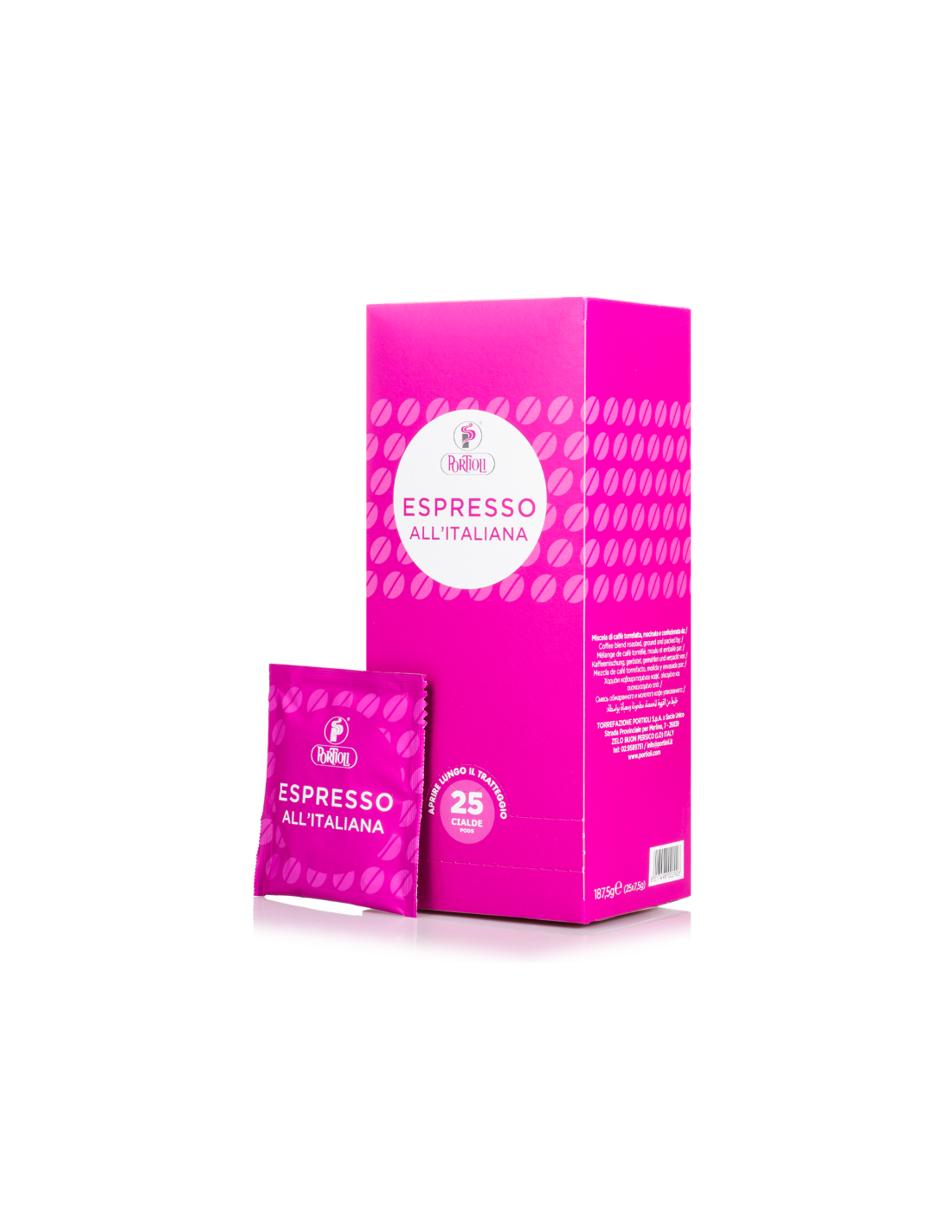 Die Espresso all'Italiana Portioli e.s.e.-Pad ist einzeln in einer Schutzatmosphäre verpackt, um alle organoleptischen Eigenschaften des Portioli-Kaffees zu bewahren, und ist außerdem mit den meisten auf dem Markt erhältlichen Kapselkaffeemaschinen kompatibel.