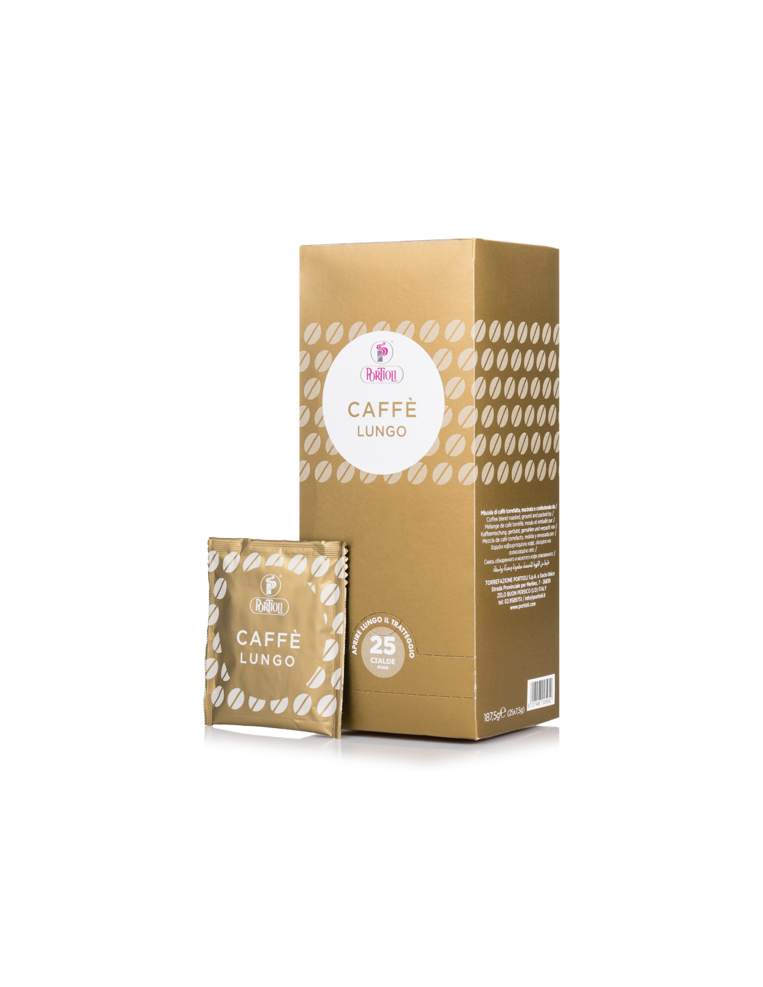 Die Portioli Caffè Lungo e.s.e.-Pad ist einzeln in einer Schutzatmosphäre verpackt, um alle organoleptischen Eigenschaften des Portioli-Kaffees zu bewahren, und ist außerdem mit den meisten auf dem Markt erhältlichen Pad-Kaffeemaschinen kompatibel.