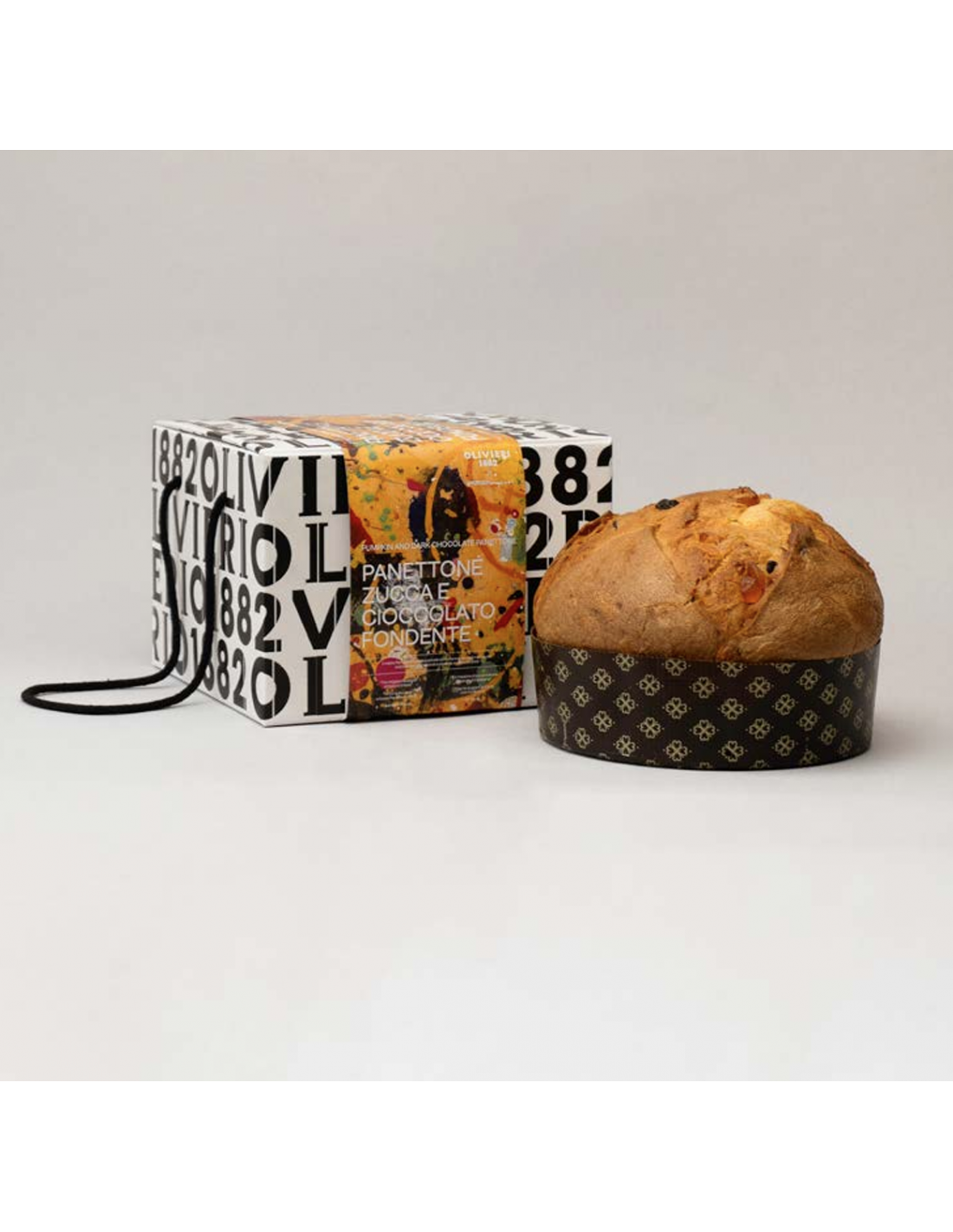Il Panettone Zucca e Cioccolato Fondente ha una doppia lievitazione di più di 48 ore, è fatto solo con lievito madre vivo ed è farcito con Zucca Candita artigianalmente da noi e con perle di Cioccolato Fondente 55%. All'interno si trovano i puntini neri della vaniglia Bourbon del Madagascar. La struttura è estremamente soffice, il gusto elegante ma deciso. È un panettone molto ricco ma estremamente digeribile grazie alla lunga lievitazione e all'utilizzo di materie prima di alta qualità. Non ha conservanti, semilavorati, aromi, grassi vegetali. È Artigianale al 100% e quindi fatto interamente a mano, con passione, come vuole la tradizione dal 1882.