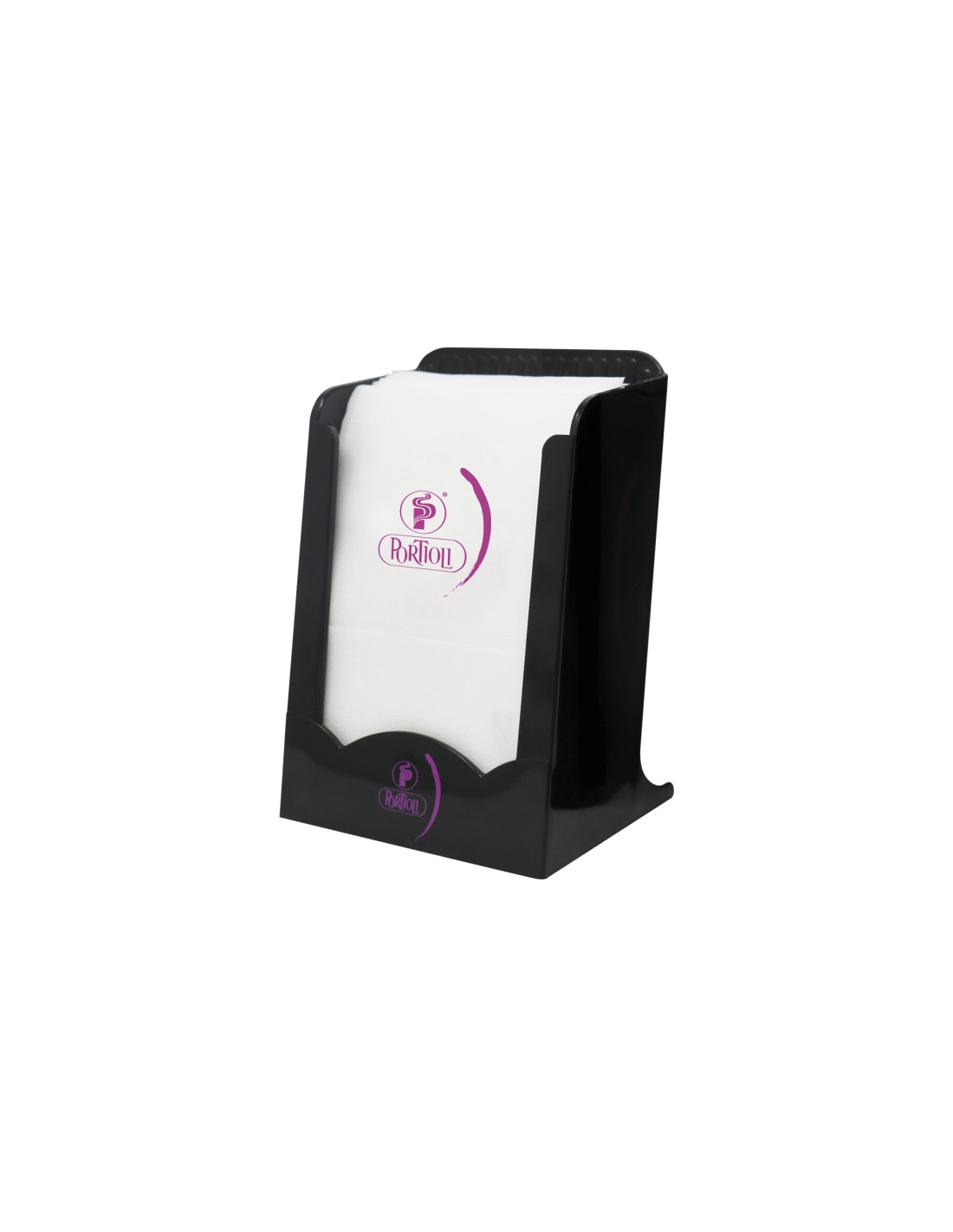 Il portatovaglioli da tavolo Portioli è realizzato in plastica ed è personalizzato con logo Portioli Style. Può contenere circa 100 tovagliolini della dimensione classica di 17X17cm.